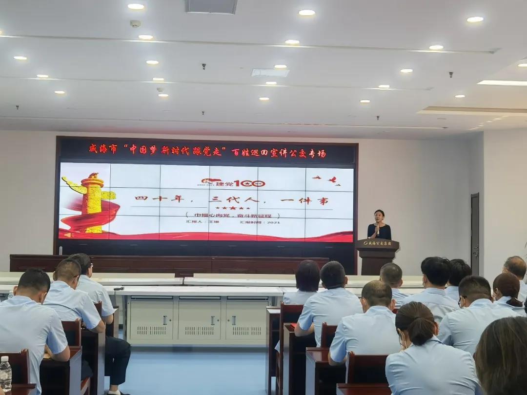 為推動(dòng)黨史學(xué)習(xí)教育走深走實(shí),講好黨的故事、革命的故事、英雄的故事、先模的故事,進(jìn)一步貫徹落實(shí)好習(xí)近平總書(shū)記“七一”重要講話精神,增強(qiáng)全體公交員工愛(ài)黨信黨護(hù)黨跟黨走的信心和決心,激發(fā)全員奮進(jìn)新時(shí)代的動(dòng)力和熱情,9月10日下午,威海公交集團(tuán)邀請(qǐng)我市“中國(guó)夢(mèng)·新時(shí)代·跟黨走”百姓巡回宣講團(tuán),為集團(tuán)機(jī)關(guān)和各基層黨支部的80余名黨員進(jìn)行了面對(duì)面的生動(dòng)宣講。