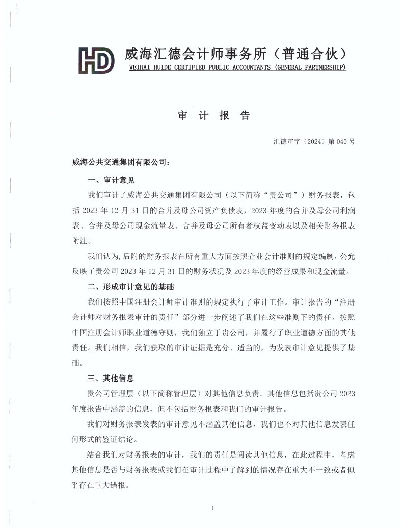 威海公交集團(tuán)2023年度財(cái)務(wù)審計(jì)報告