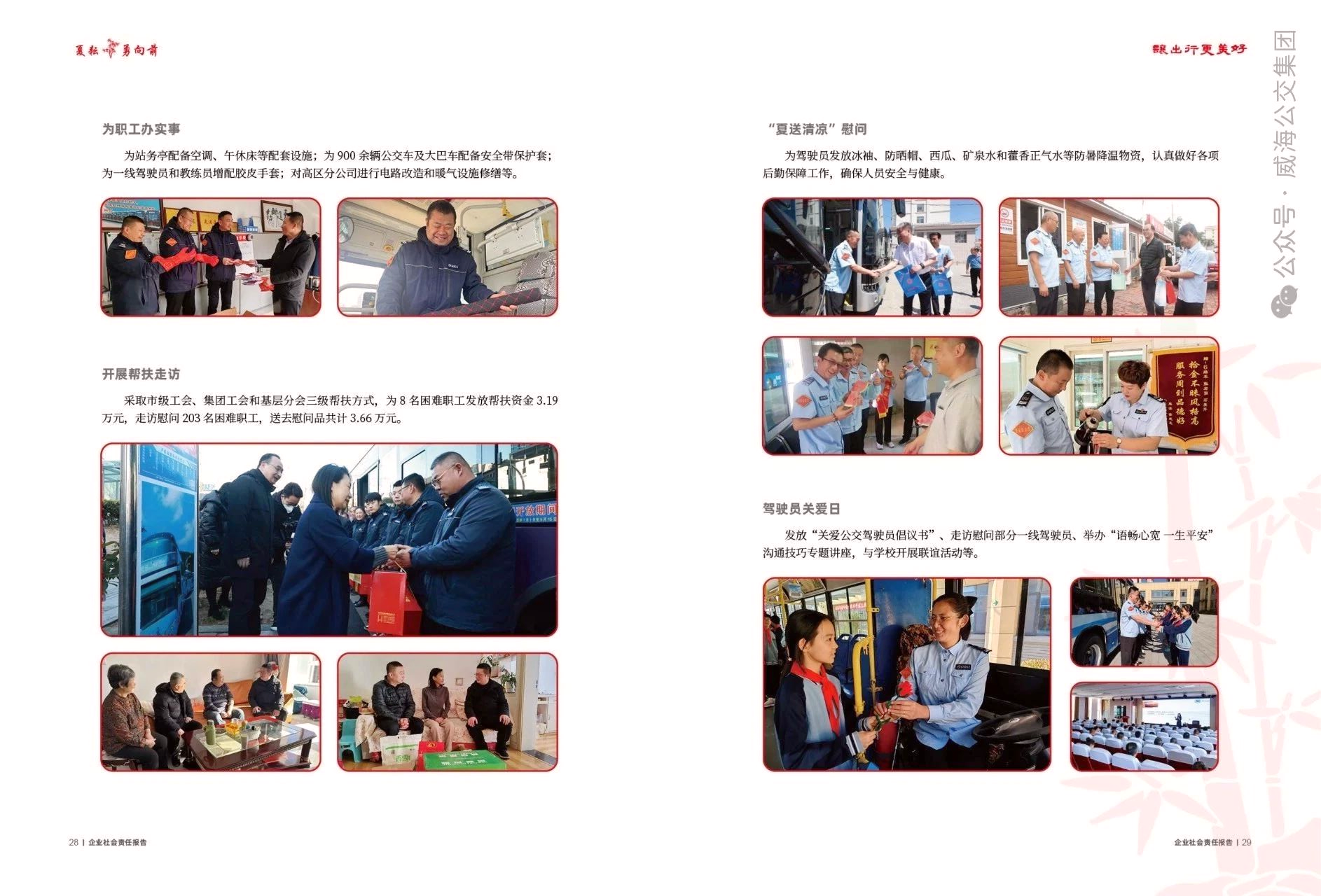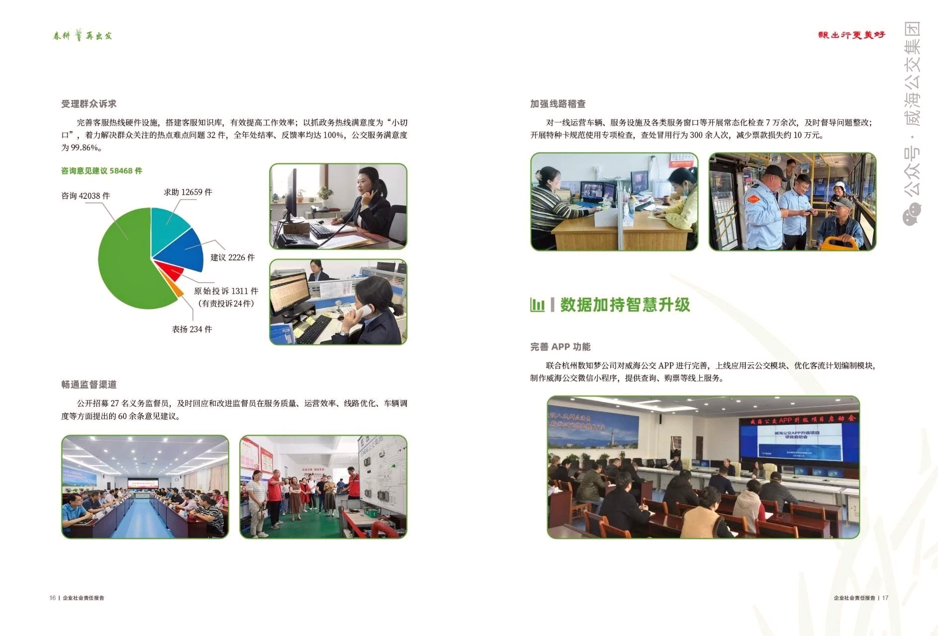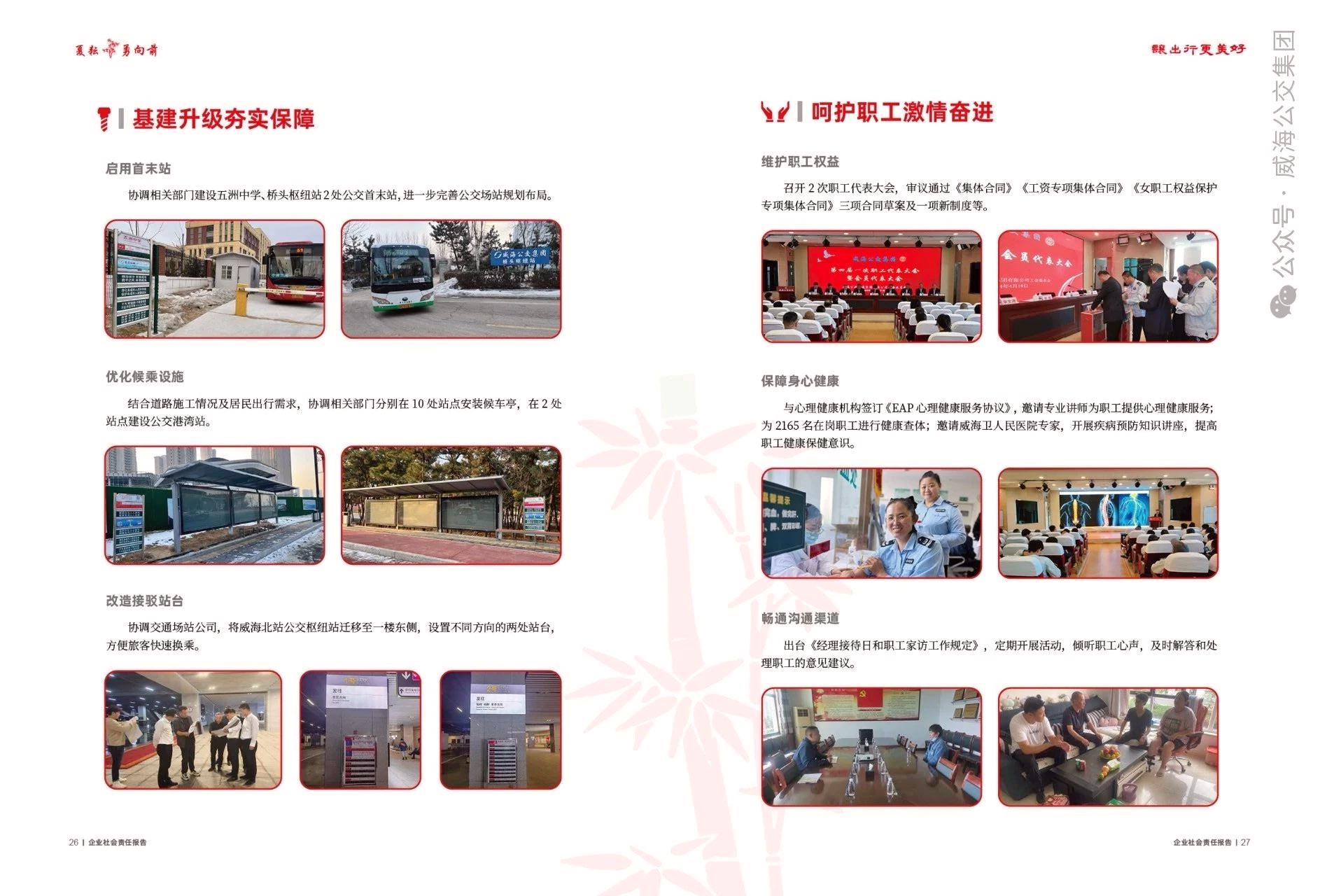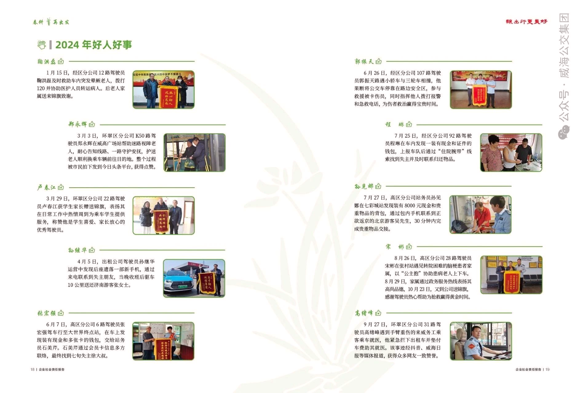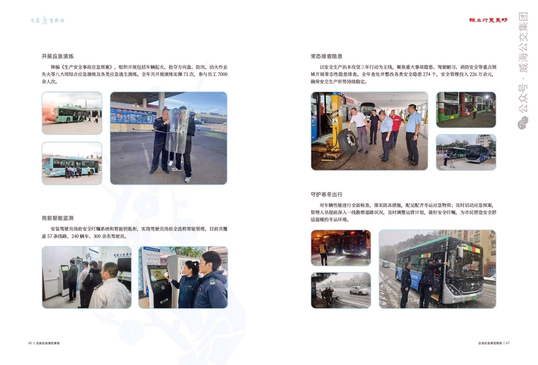 《威海公交集團(tuán)2024年度社會(huì)責(zé)任報(bào)告》(以下簡(jiǎn)稱《報(bào)告》)正式發(fā)布。2024年,威海公交集團(tuán)堅(jiān)持以習(xí)近平新時(shí)代中國(guó)特色社會(huì)主義思想為指導(dǎo),深入貫徹落實(shí)黨的二十大和二十屆三中全會(huì)精神,以“一路有黨·共享美好”黨建品牌為統(tǒng)領(lǐng),在四季更迭中,持續(xù)深化公共交通服務(wù),生動(dòng)踐行責(zé)任與擔(dān)當(dāng),呈上一份溫暖且有力的成績(jī)單。這是威海公交集團(tuán)連續(xù)第四年向外界發(fā)布企業(yè)年度社會(huì)責(zé)任報(bào)告。《報(bào)告》以“春耕”“夏耘”“秋實(shí)”“冬蘊(yùn)”四個(gè)篇章,從多個(gè)維度、全方位呈現(xiàn)了威海公交保障城市交通順暢、方便市民出行,與百姓生活緊密相連的實(shí)際行動(dòng)?!秷?bào)告》將通過企業(yè)官網(wǎng)、微信公眾號(hào)等平臺(tái)向社會(huì)公開,主動(dòng)接受社會(huì)各界的監(jiān)督與評(píng)價(jià),以此為契機(jī),期望獲得社會(huì)公眾更多的關(guān)注、理解與支持。