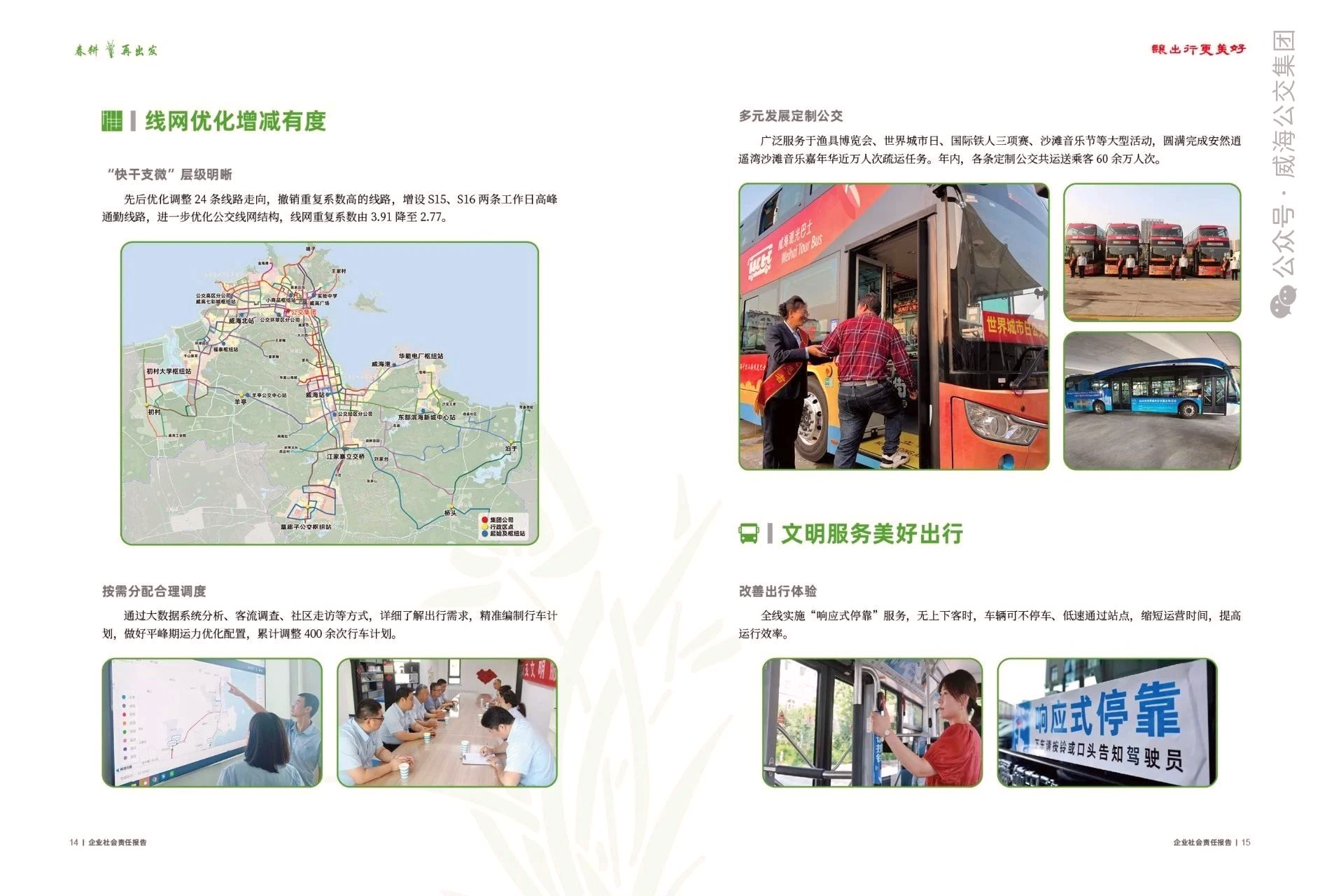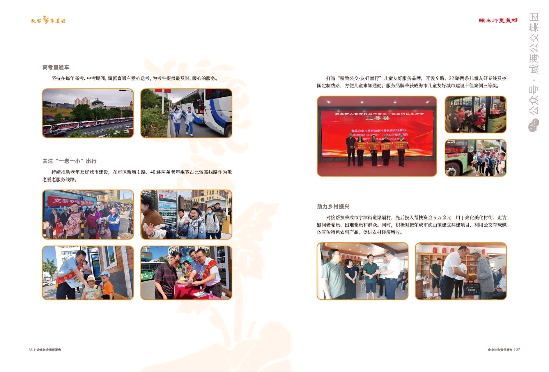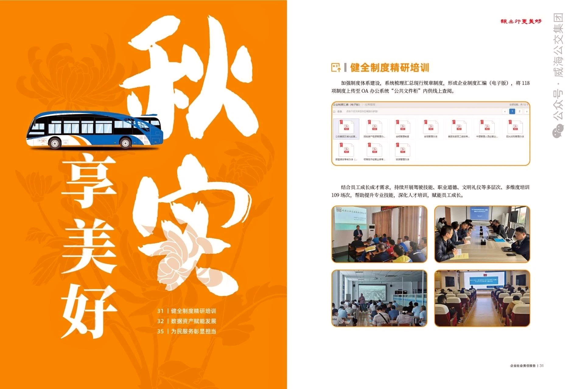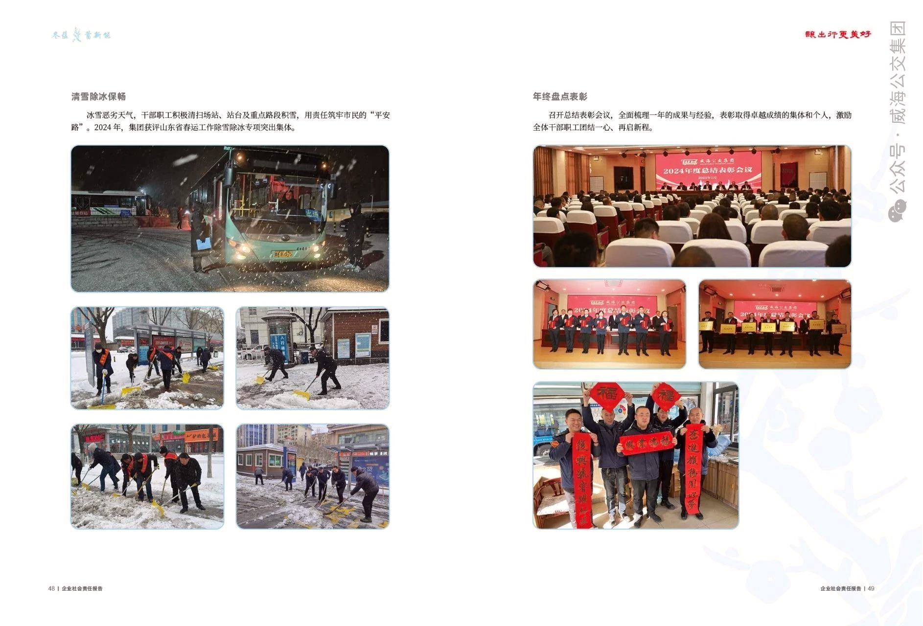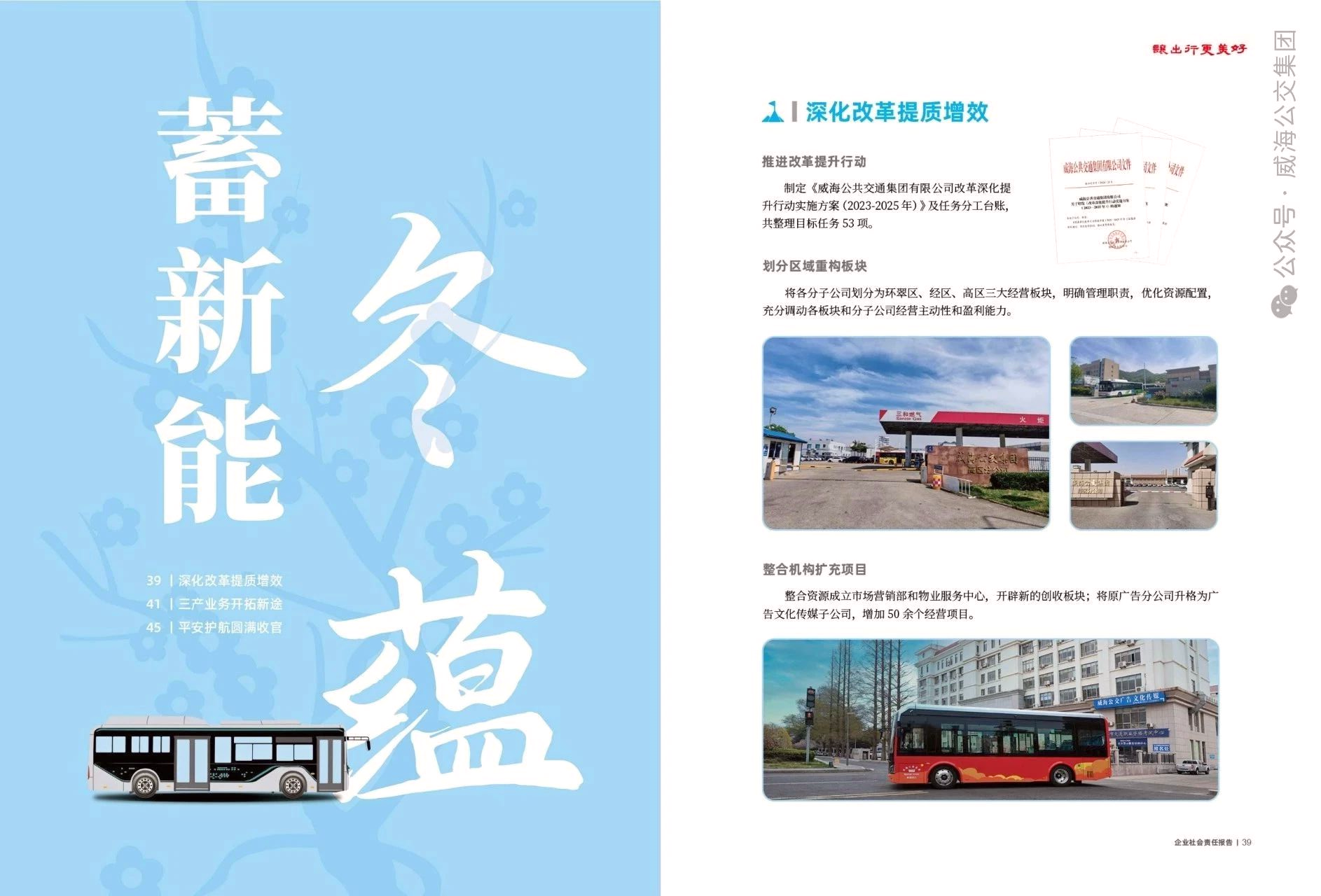 《威海公交集團(tuán)2024年度社會(huì)責(zé)任報(bào)告》(以下簡(jiǎn)稱《報(bào)告》)正式發(fā)布。2024年,威海公交集團(tuán)堅(jiān)持以習(xí)近平新時(shí)代中國(guó)特色社會(huì)主義思想為指導(dǎo),深入貫徹落實(shí)黨的二十大和二十屆三中全會(huì)精神,以“一路有黨·共享美好”黨建品牌為統(tǒng)領(lǐng),在四季更迭中,持續(xù)深化公共交通服務(wù),生動(dòng)踐行責(zé)任與擔(dān)當(dāng),呈上一份溫暖且有力的成績(jī)單。這是威海公交集團(tuán)連續(xù)第四年向外界發(fā)布企業(yè)年度社會(huì)責(zé)任報(bào)告。《報(bào)告》以“春耕”“夏耘”“秋實(shí)”“冬蘊(yùn)”四個(gè)篇章,從多個(gè)維度、全方位呈現(xiàn)了威海公交保障城市交通順暢、方便市民出行,與百姓生活緊密相連的實(shí)際行動(dòng)?!秷?bào)告》將通過企業(yè)官網(wǎng)、微信公眾號(hào)等平臺(tái)向社會(huì)公開,主動(dòng)接受社會(huì)各界的監(jiān)督與評(píng)價(jià),以此為契機(jī),期望獲得社會(huì)公眾更多的關(guān)注、理解與支持。