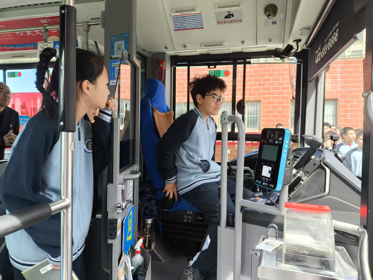 為了有更直觀的體驗,現(xiàn)場還讓學生輪流坐上駕駛位,親身感受駕駛員視角,部分同學站在公交車的各個盲區(qū)位置,讓“駕駛員”進行觀察,真切感受公交車視線盲區(qū)的存在及其危險性。孩子們紛紛表示:“以前只知道要注意交通安全,但沒想到公交車的盲區(qū)這么大,以后等車、過馬路的時候可得多留意。”