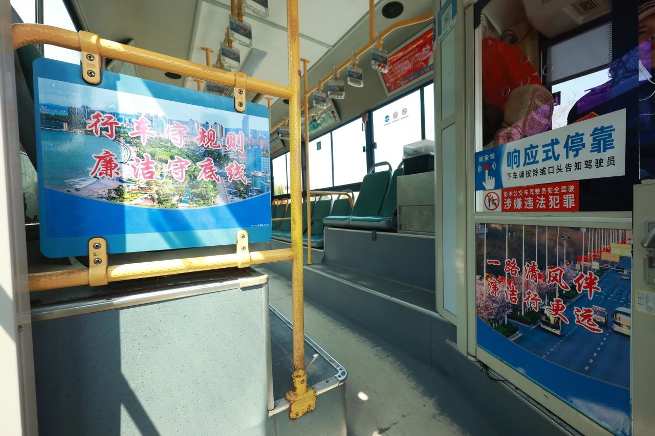 “清風徐來路自明,廉潔公交心相連”“心如水之源,源清則流清,心正則事正”……走進主題車廂,廉潔詩詞與山水畫卷相得益彰,拉手和刊版上的廉潔名言、廉潔故事吸引乘客紛紛駐足。主題公交車貫穿于市區(qū)至高區(qū)、經(jīng)區(qū)、臨港區(qū),途經(jīng)學校、企業(yè)、社區(qū)、商圈、火車站等,充分發(fā)揮公交車流動性強、覆蓋面廣、距離群眾近等優(yōu)勢,以喜聞樂見的形式貼近百姓生活、融入日常出行。