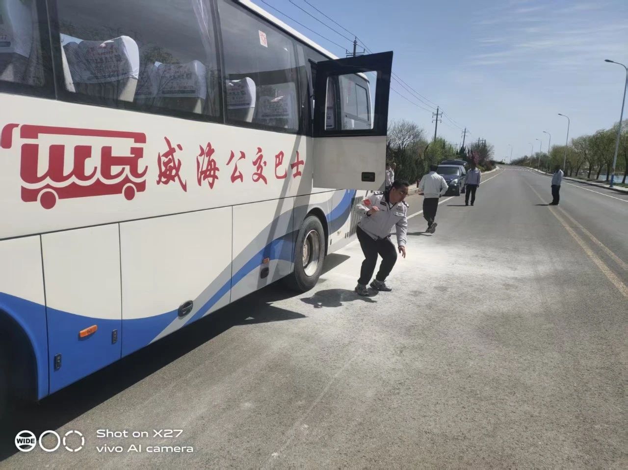 4月25日,威海公交集團巴士公司聯(lián)合三星重工業(yè)(榮成)有限公司在榮成市俚島鎮(zhèn)彩石路開展通勤班車應急逃生演練,通過理論講解和實操演練,進一步強化參訓人員的安全防范意識和自救互救能力,有效提升駕駛員的消防安全意識與面對突發(fā)事件的應急處置能力。